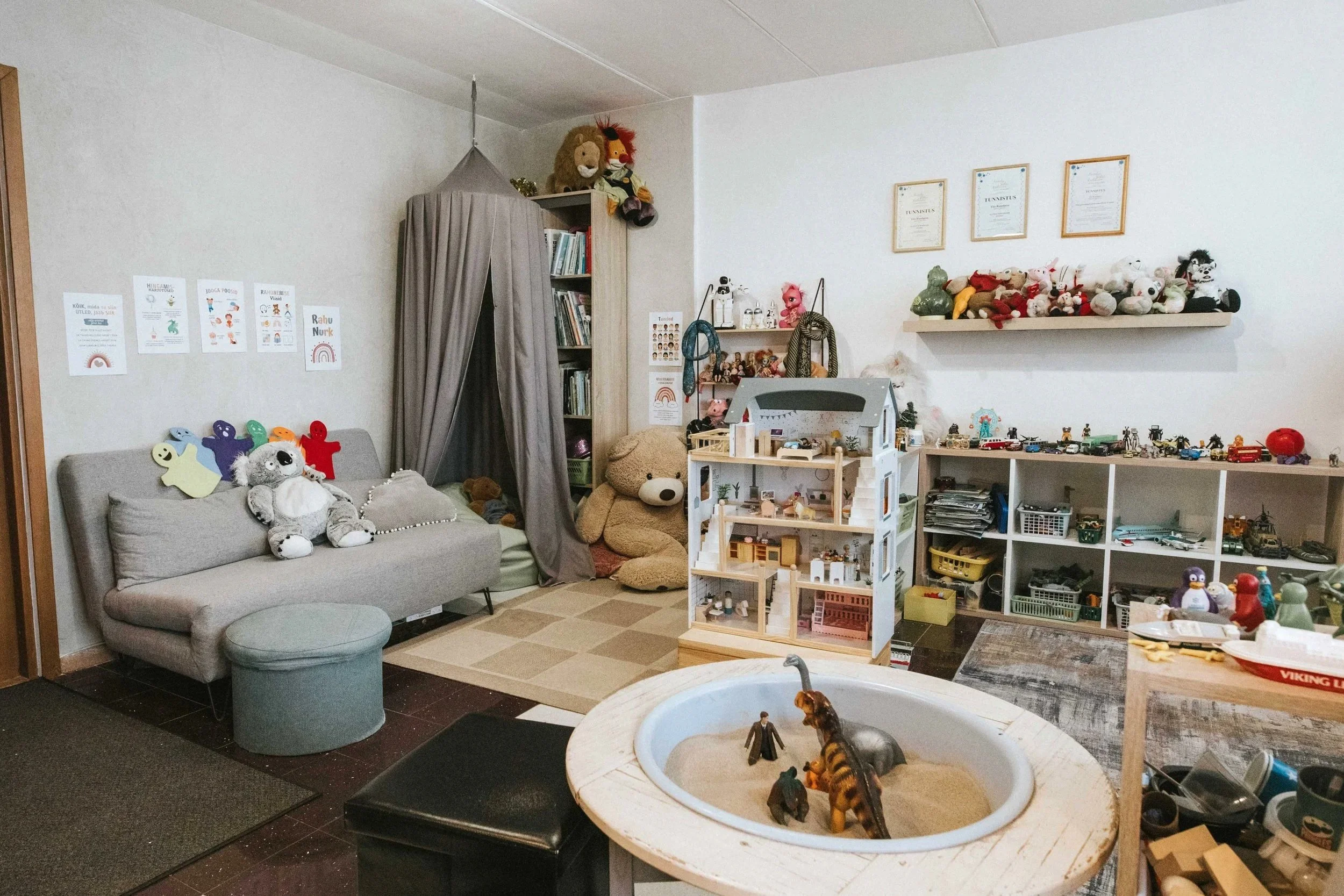 Mänguteraapia ruum Viljandi kesklinnas. Täpne aadress saadetakse broneeringu kinnitamisel.